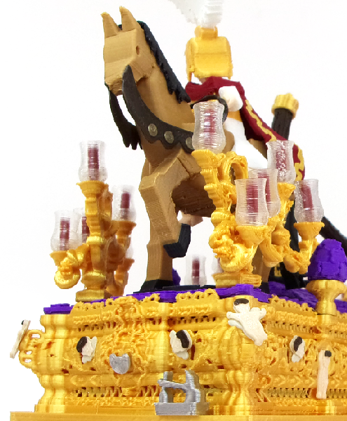 Un paso en miniatura que ofrece con gran detalle y fidelidad de uno de los pasos más icónicos de la Semana Santa sevillana.