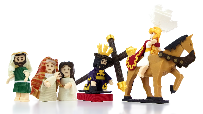 Destacan también el conjunto el paño hebreo de la mujer, consolada por la hija que coloca su mano en la espalda, y el Cirineo, que incluye por primera vez un paño en la cabeza.